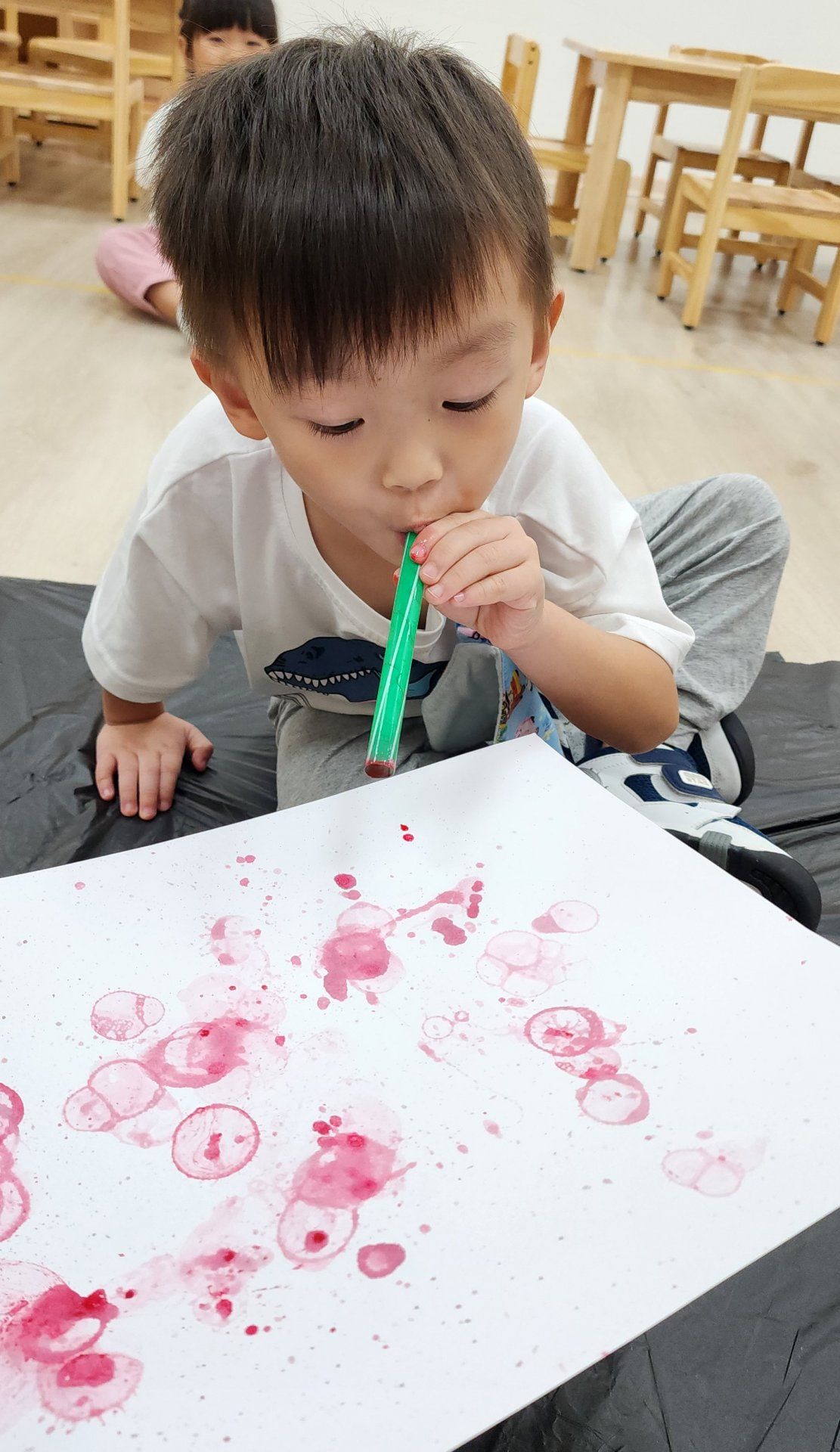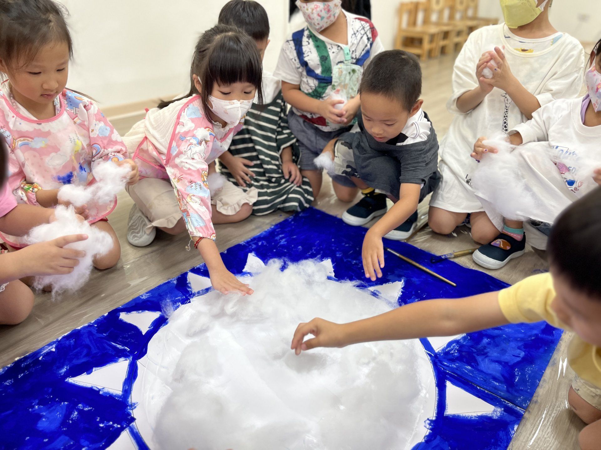 中大班負責國旗的12道光芒星、白色的部分使用棉花來留白、紅色部分則由幼幼班、小班的寶貝合力完成💪