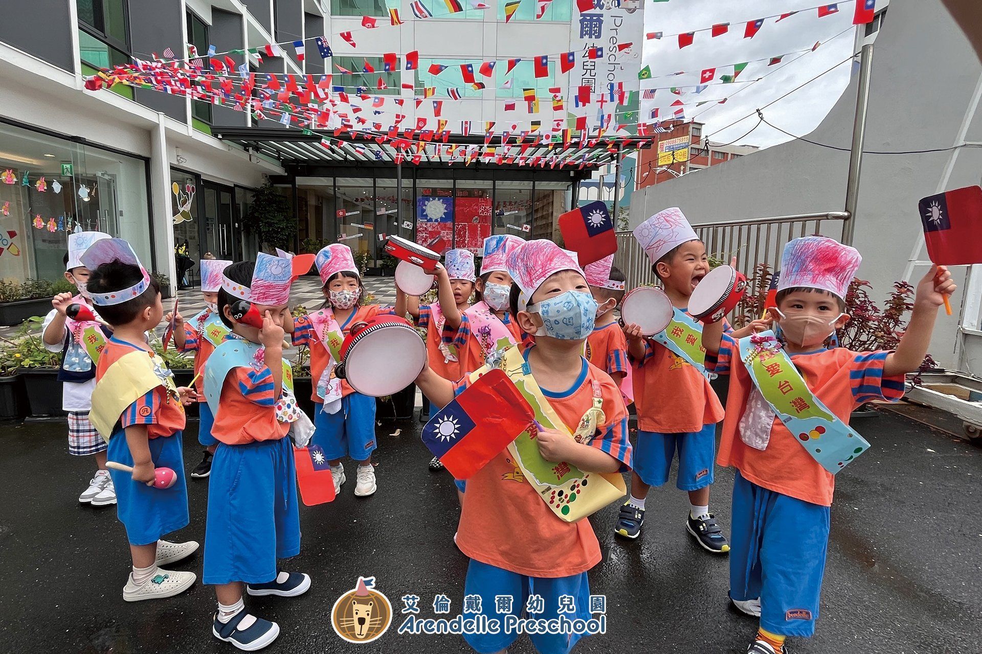 除了一起製作國旗,老師們設計相關的國慶遊行活動讓寶貝體驗