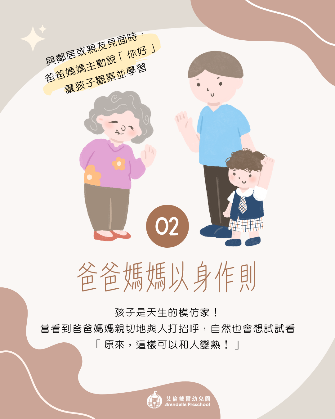 孩子是天生的模仿家!當他們看到爸爸媽媽親切地與人打招呼,自然也會想試試看