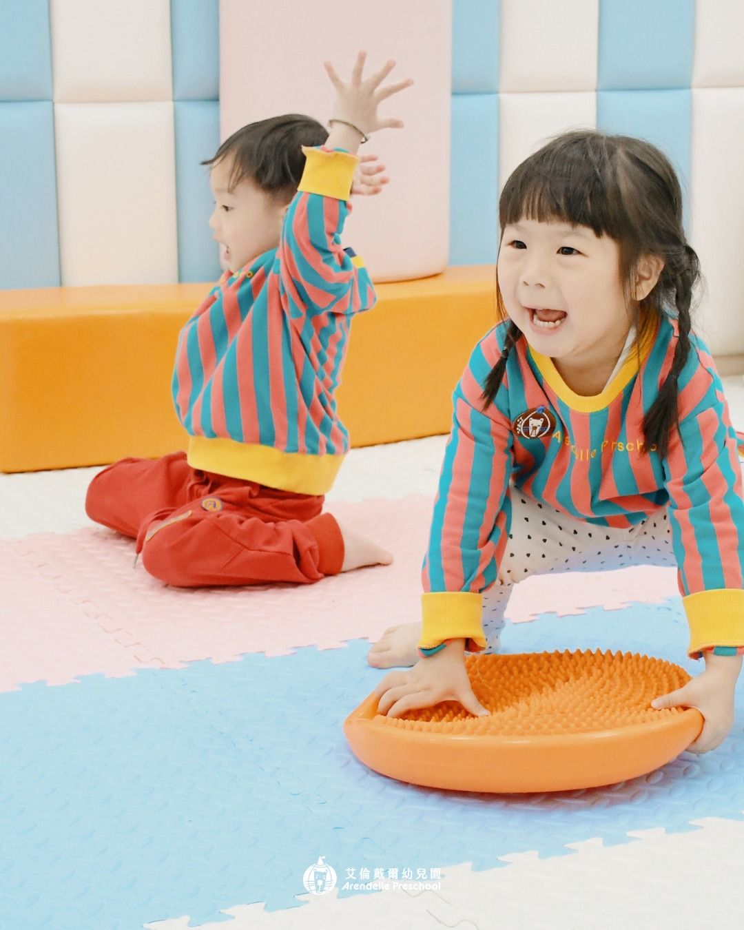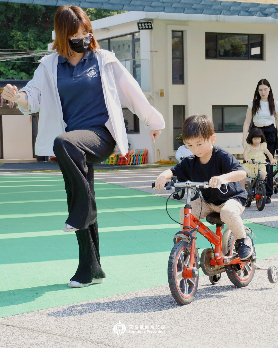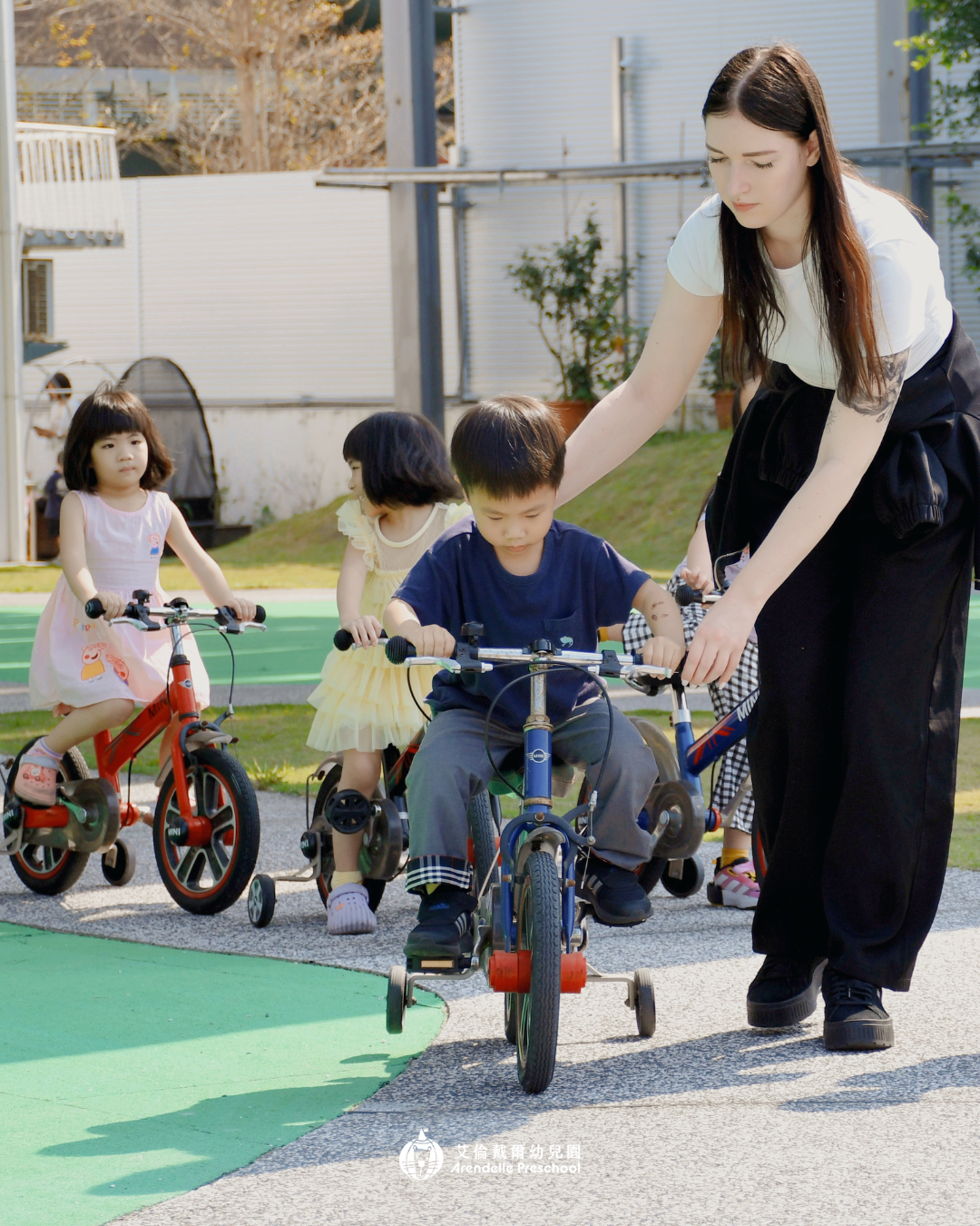 艾倫戴爾除了聘請專業教練指導各年齡層的孩子大肌肉活動課程,幫助孩子增進肌耐力、身體協調能力和訓練平衡感,更增加課程的多元性,規劃活力體操等,環境上也提供戶外操場、腳踏車道,室內則有感覺統合教室,確保孩子能隨時在開心且安全的環境中活動。